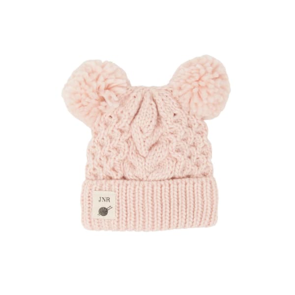 Kids Cable Double Yarn Pom Hat - Sparkle Blush Pink