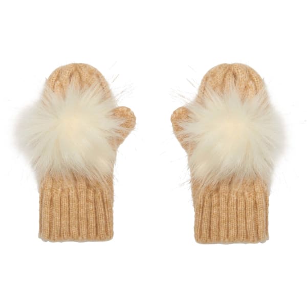 Kids Aran Cable Pom Pom Mittens - Oatmeal