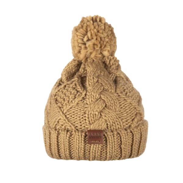 Aran Workshop Diamond Cable Pom Pom Hat - Sand