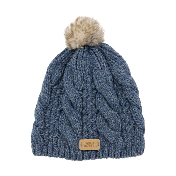 Loch Ness Diamond Cable Text Pom Pom Hat - Black