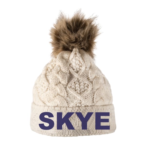 Aran Diamond Cable Skye Text Hat - Cream