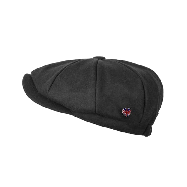 Carlyle - Wool Melton Newsboy Cap - Black with pin badge - Carlyle Heath & CoCarlyle Heath & Co