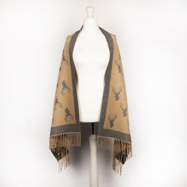 Super Soft Jacquard Scarf - Stag - Grey Camel