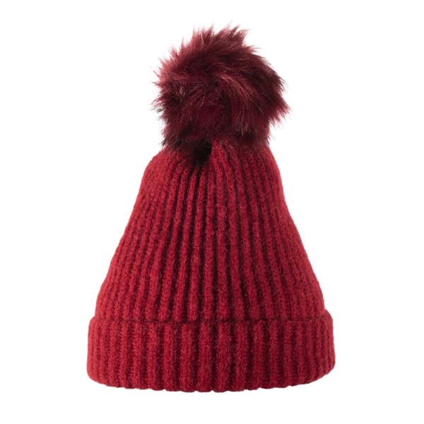 Soft Touch Rib Pom Pom Hat - Tonal Faux Fur - Forest Green