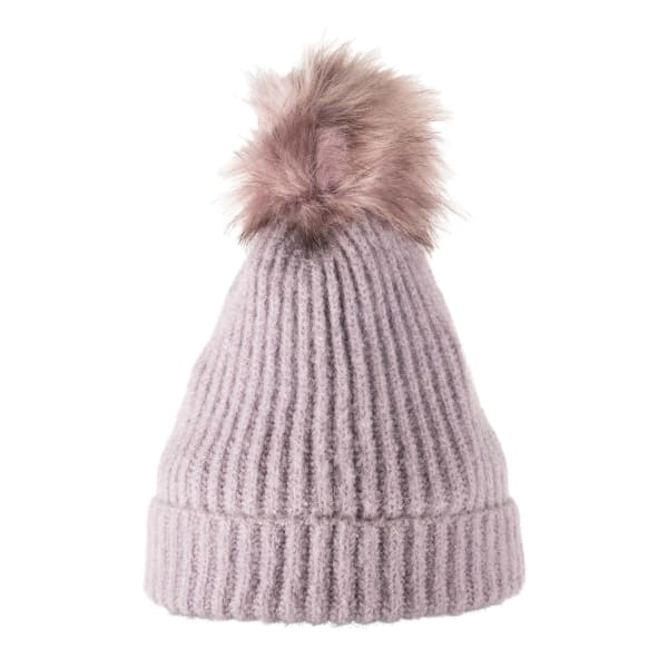 Soft Touch Rib Pom Pom Hat - Tonal Faux Fur - Oxford Grey