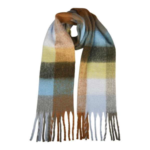Colour Block FoMo Blanket Scarf - Brown/Pale blue/Green multi