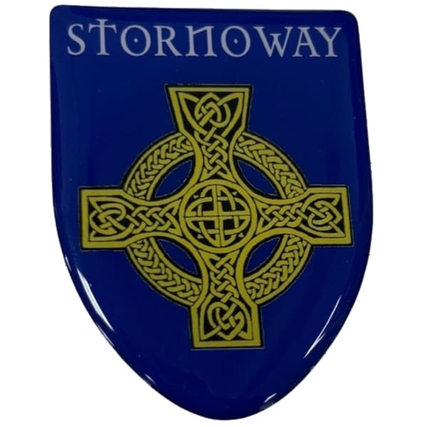 Stornaway Yellow Celtic Cross Blue Background Shield Keyring