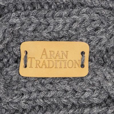 Chunky Cable knit headband from Aran Traditions. Traditional Aran cable design in soft cosy 3GG knit. Fully lined with a flexible microfibre lining for extra comfort. Pale tan leather brand logo hand stitched on the centre front.