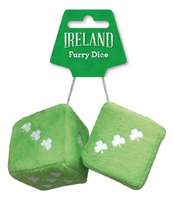 Our Irish green furry hanging dice with Shamrock design is perfect to style out you car or home.