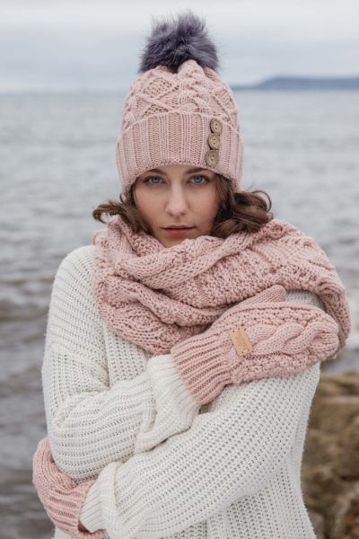 Aran Cable Mitts - Blush