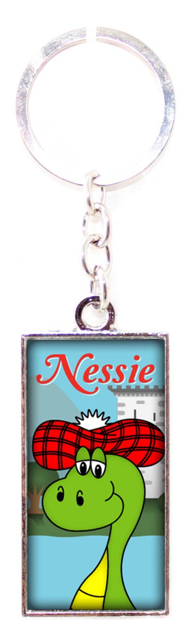 - Silver plated oblong keyring - Nessie inset epoxy dome