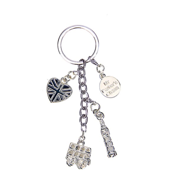 Featuring the famous Big Ben, Big Red Bus and a Union Jack heart charm. This keyring makes the perfect keepsake for yourself or loved ones.