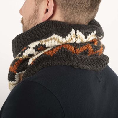 Heritage Chunky Fairisle Neckwarmer - Mushroom/Orange