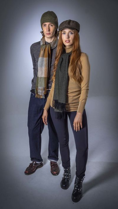 - Soft and warm pure wool material with a herringbone pattern.