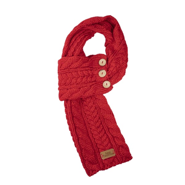 Aran Cable Button Scarf- Red