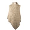 Aran Cable Button Shawl Neck Poncho - Oatmeal