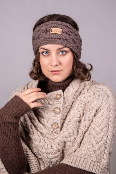 Aran Cable Button Rib Polo Poncho - Tan Twist