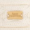 Chunky Cable knit snood from Aran Traditions. Traditional Aran multi cable and diamond design in soft cosy 3GG knit. Infinity style snood scarf. Pale tan leather brand logo hand stitched.