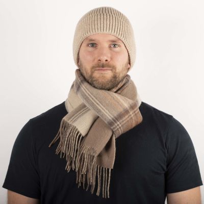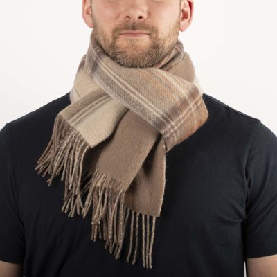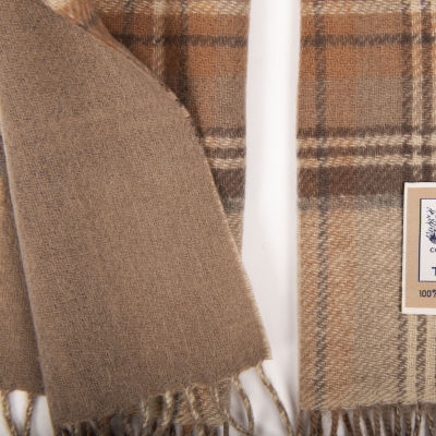 Double Face Tartan Brushed Wool Scarf - Natural Stewart