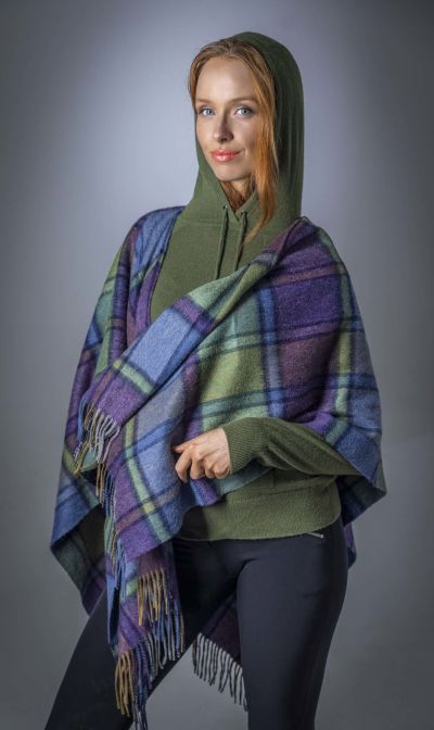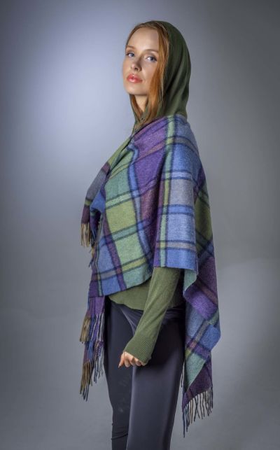 Wrap yourself up in luxurious Tartan. Our Pure Wool Serape is stylish and versatile.s Soft brushed premium finish with fringe edges. Inspired by the Mexican blanket shawl shape, the cut out detail makes it so easy and comfortable to wear.s Throw over a jacket or add a touch of tradition to your LBD! As perfect addition to your wardrobe. Large Heritage Traditions woven branded label hand stitched on corner Made in Mongolia with pure wool from local shepherds. SIZE INFO: 120cm wide x 130cm long. Length from shoulder when worn approx 60cm. Fringe 10cm. MATERIAL: 100% Pure Wool CARE INSTRUCTIONS Dry Clean Only
