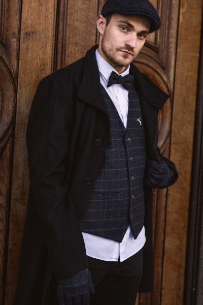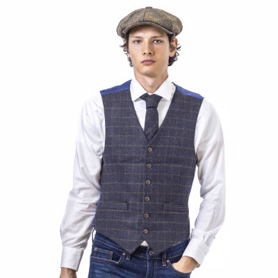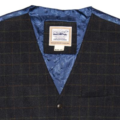 Heritage Tweed Waistcoat - Blue Box Check -L - 42"