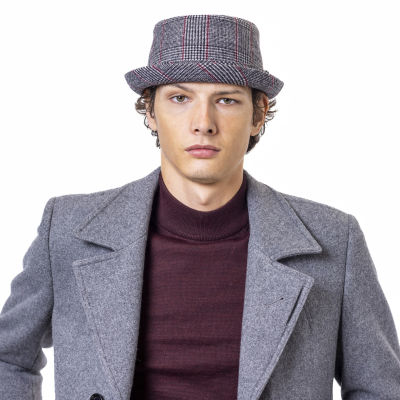 LARGE - Tweed Pork Pie Hat - Prince of Wales Check Grey