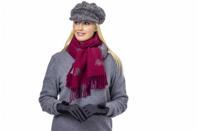 Super Soft Jacquard Scarf - Busy Bee - Oxblood