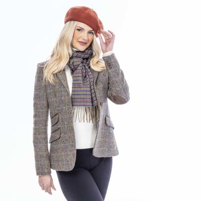 Each scarf is crafted with care, featuring a delicate fringe end and an embroidered label that adds a touch of heritage to this classic design.