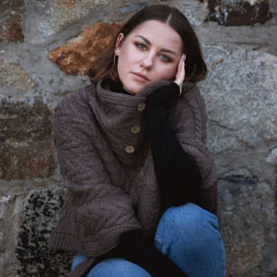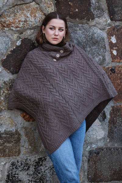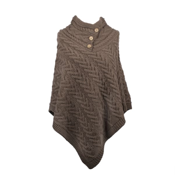 Fold-over neck shawl collar with natural coconut button detail. Fabric: 100% acrylic knit . Sizing:Front width 100cm, Back length 68cm from centre back neck, Fold over collar 34cm.Care Instructions: Handwash only. Reshape while damp. Do not bleach. Do not tumble dry dry. Do not dry clean. Very cool iron only.