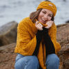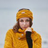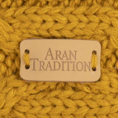 Chunky Cable knit headband from Aran Traditions. Traditional Aran cable design in soft cosy 3GG knit. Fully lined with a flexible microfibre lining for extra comfort. Pale tan leather brand logo hand stitched on the centre front.