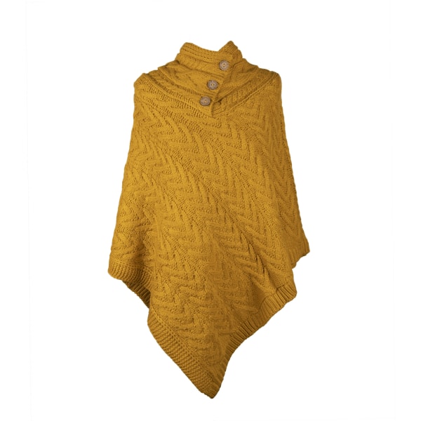 Aran Cable Button Neck Shawl - Amber