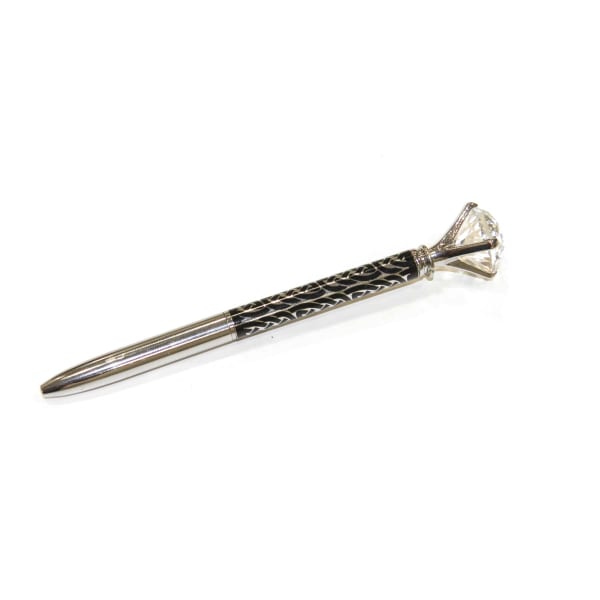 Stand out in the office or classroom with our Silver Celtic retractable pen. Includes a Clear stone on top.