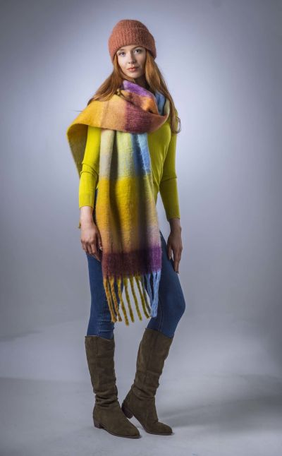 SCAR-236 | SCAR-236 Colour Block FoMo Blanket Scarf - Purple/Yellow/Blue multi | Login to see prices | 5 | In Stock | |