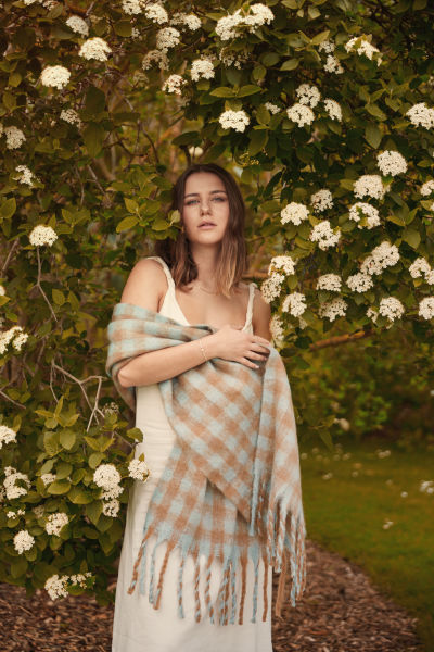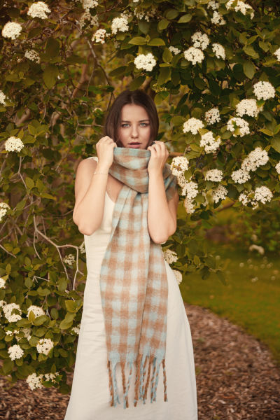 SCAR-238 | SCAR-238 Colour Block FoMo Blanket Scarf - Pale blue/Beige check | Login to see prices | 5 | In Stock |