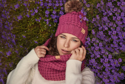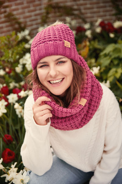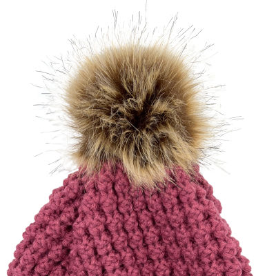 Aran Popcorn Bobble Hat - Rose