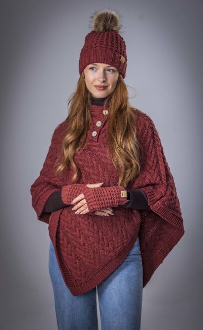 Our aran popcorn bobble hat range features a popcorn knit with matching faux fur pom pom and wide turn up hem. Pale tan leather brand logo hand stitched on the front hem rib. Matching snoods available.