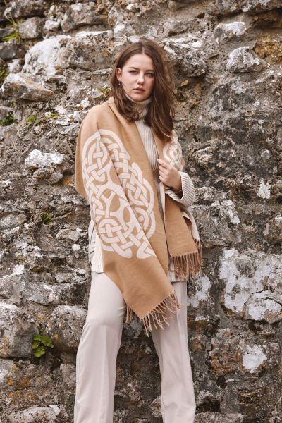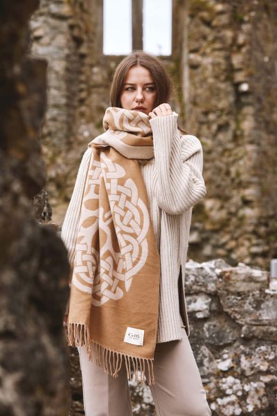 Celtic Super Soft Jacquard Scarf - Tree of Life - Camel