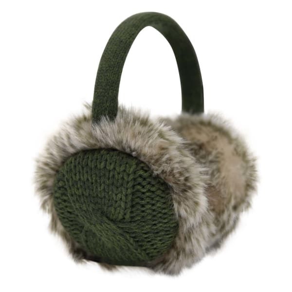 Aran Cable Earmuffs - Dark Green / Nat fur