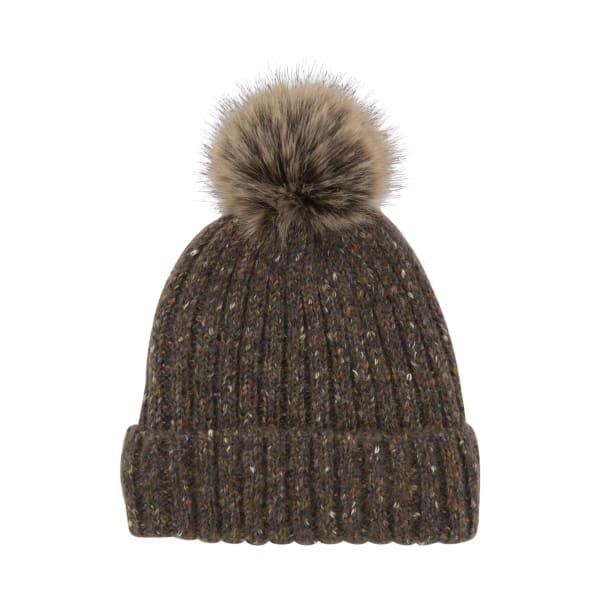 Heritage Recycled Donegal Rib Lined Pom Pom Hat - Brown