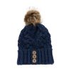 Aran Diamond Cable Button Hat - Navy Mix