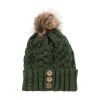 Aran Diamond Cable Button Hat - Dark Green