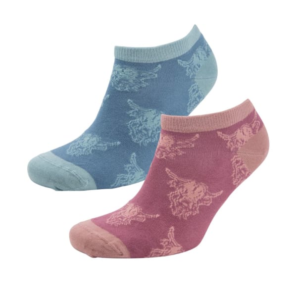 Heilan Coo Ladies 2pk Bamboo Trainer Socks - Damson/Slate