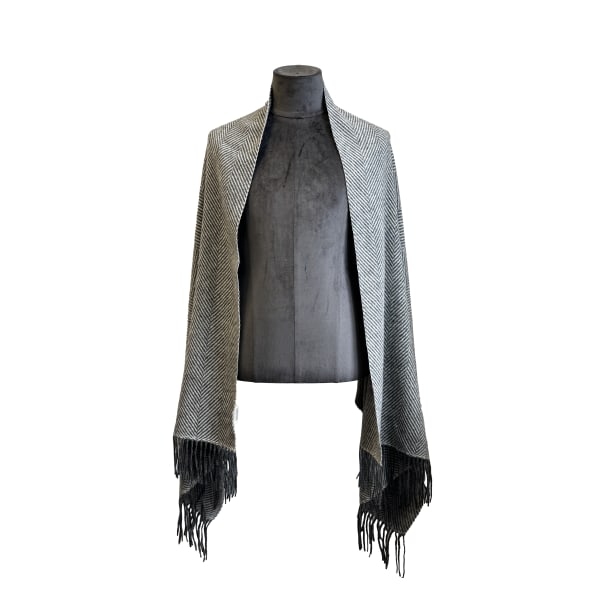 Grey Herringbone Wool Mix Stole