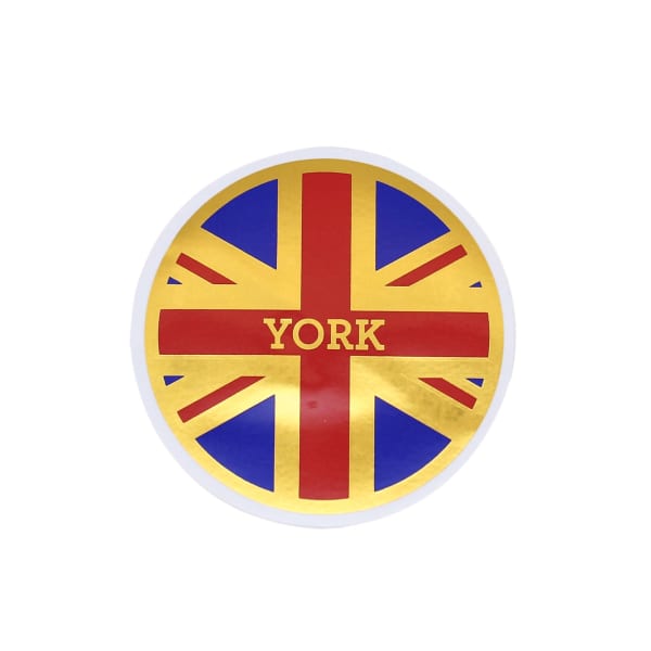 Show off your love for York with our York Gold Foil Union Jack Sticker. Perfect for your car, laptop or any smooth flat surface. Suitable for indoor and outdoor use. Easy to apply