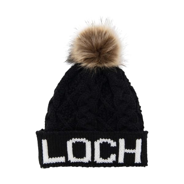 Loch Ness Diamond Cable Text Pom Pom Hat - Black