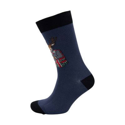 Triptoes Kilted Stag Bamboo Ankle Socks - Navy