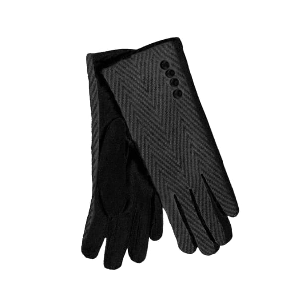 Lds Heritage Super Soft Herringbone Button Glove - Black
