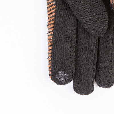 Discover the perfect blend of style and functionality with our Herringbone Buckle Gloves from our women's collection. These gloves showcase a classic herringbone pattern, complemented by comfortable stretch solid colour palms for a snug fit. Adding a touch of elegance, the index finger is embellished with embroidered floral detail, providing a convenient capacitive touch feature that allows you to use your smartphone without removing your gloves.