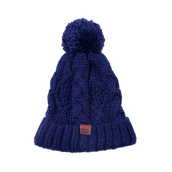 Aran Workshop Diamond Cable Pom Pom Hat - Navy