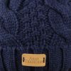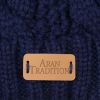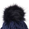 Traditional Aran cable design in soft cosy knit hat. Matching Faux Fur pom pom. Turn up wide rib edge for a cosy flexible fit. Pale tan leather brand logo hand stitched on the front hem rib.